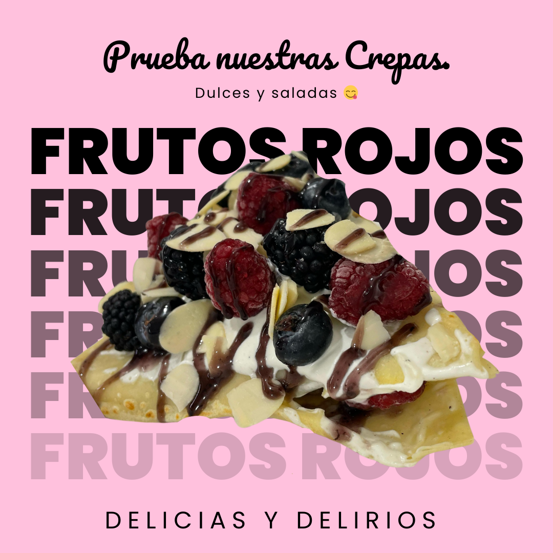 Un delirio para el paladar Crepa rellena de queso philadelphia, Coronada con frutos rojos mermelada y Almendra fileteada