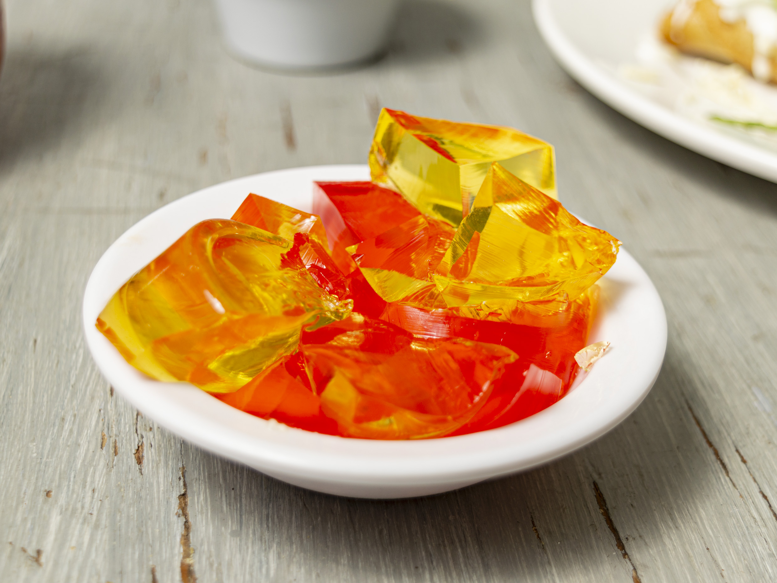 Sincronizadas de tortilla de harina(3 piezas) con jamon, queso manchego, queso oaxaca, acompañadas con pico de gallo. acompañados con fruta de temporada o gelatina del dia. Cafe de olla, americano o te.