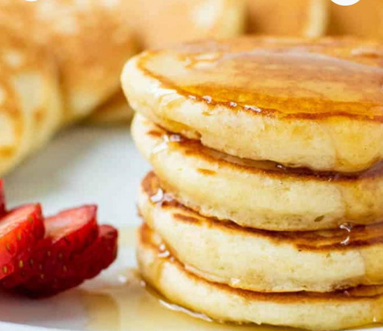 Hot Cakes (3 piezas) acompañados con lechera, miel maple o mermelada de fresa. acompañados con fruta de temporada o gelatina del dia. Cafe de olla, americano o te.