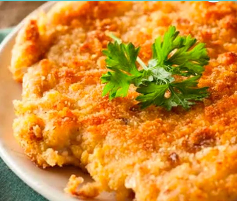 Pechuga Empanizada acompañada con verduras al vapor o ensalada, acompañados con fruta de temporada o gelatina del dia. Cafe de olla, americano o te