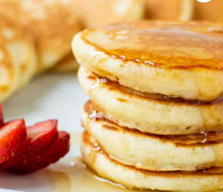Hot cakes (3 piezas) acompañados con lechera, miel maple o mermelada de fresa.