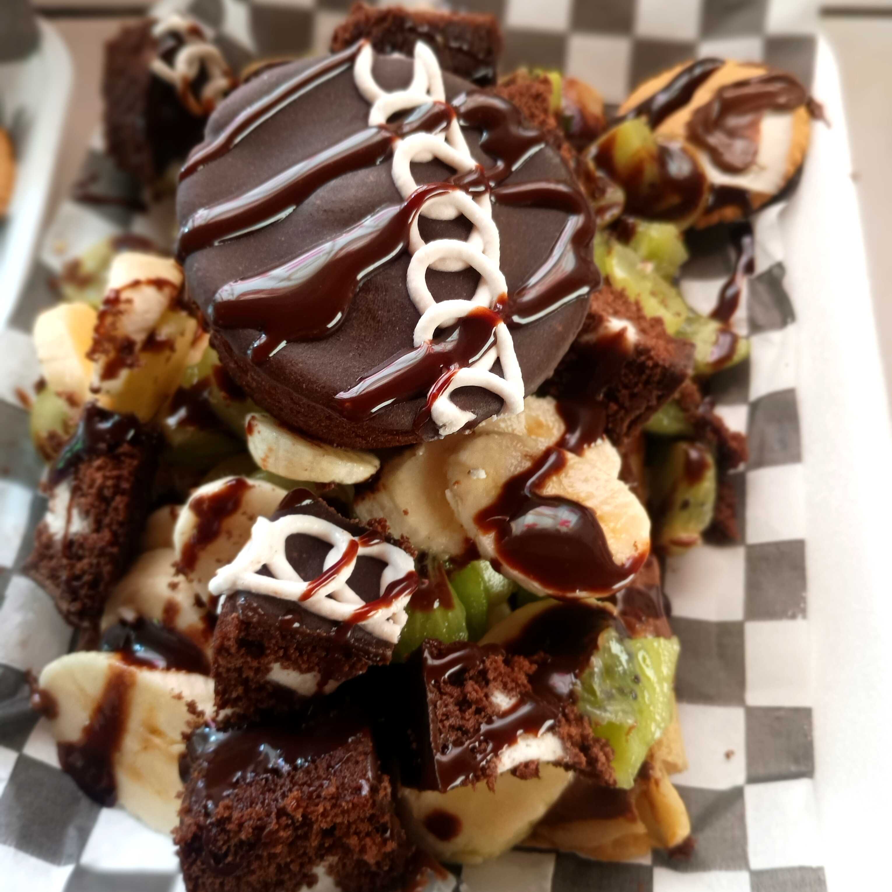 Concha de chocolate o vainilla con Philadelphia, 2 frutas, dulce a elegir y chantilly.