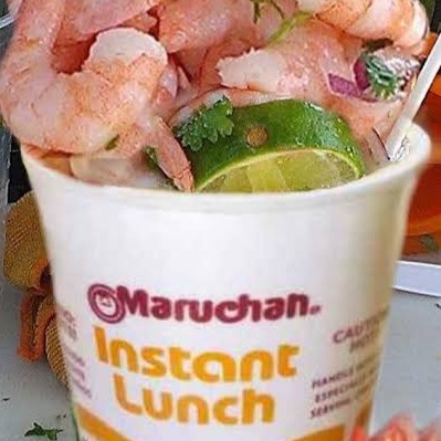 Maruchan de Camarón o Habanero con camarones, salsa magi, salsa inglesa,aguacate y salsa .