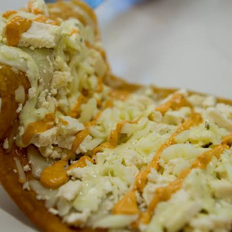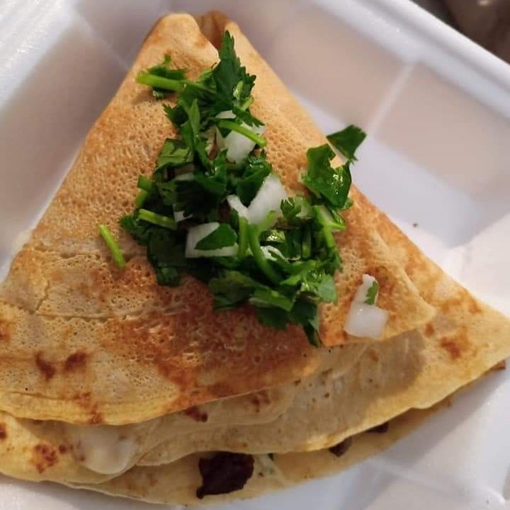 Carne de suadero, queso manchego, cilantro y cebolla.