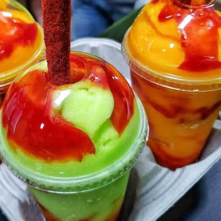 Helado de limón, jugo de limón, jugo de mango y Tajín.