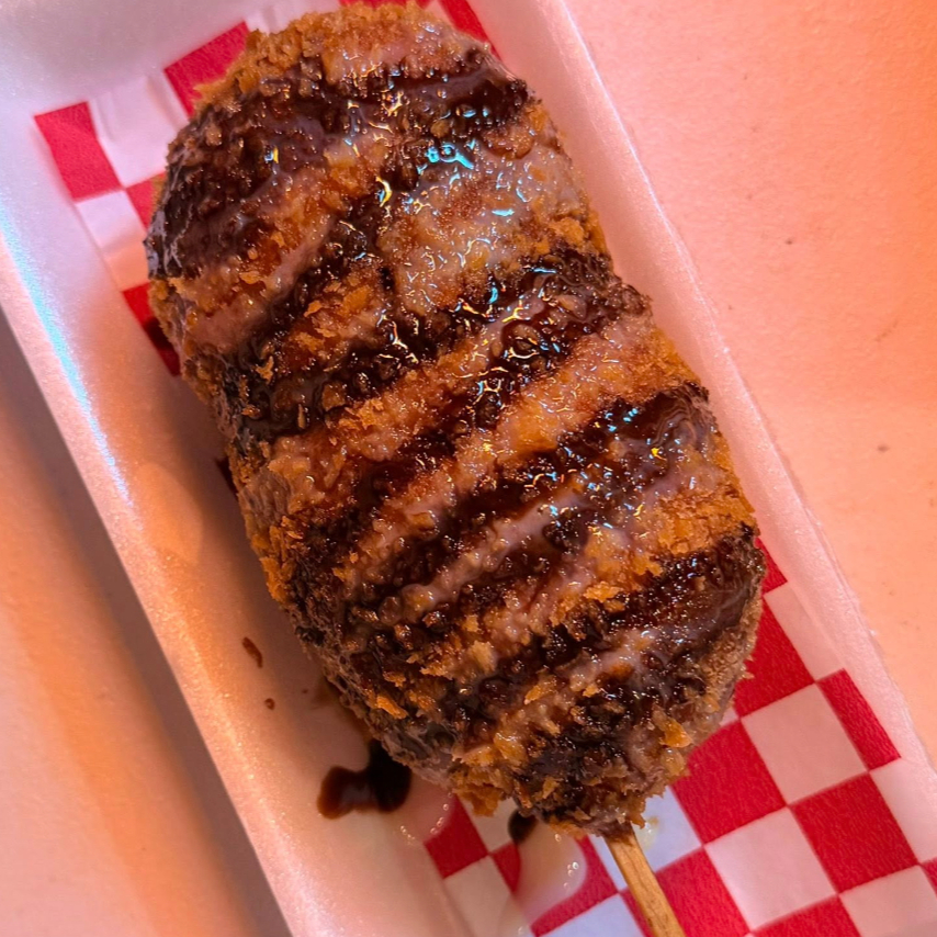 1 Banderilla de salchicha cubierta de papas. (Personal)