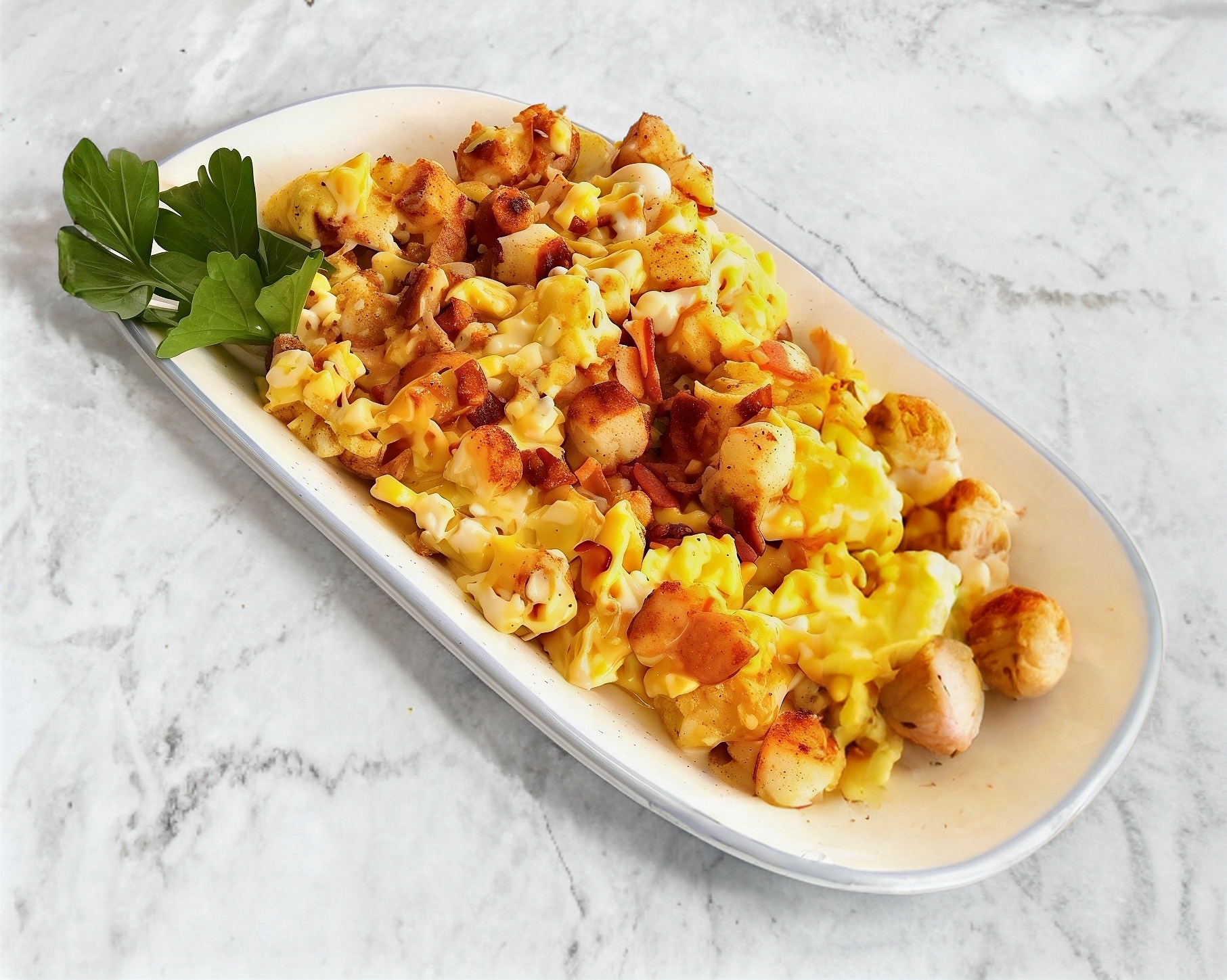 3 Huevos revueltos o estrellados, acompañados de 3 tortillas o un bolillo más salsa de la casa.