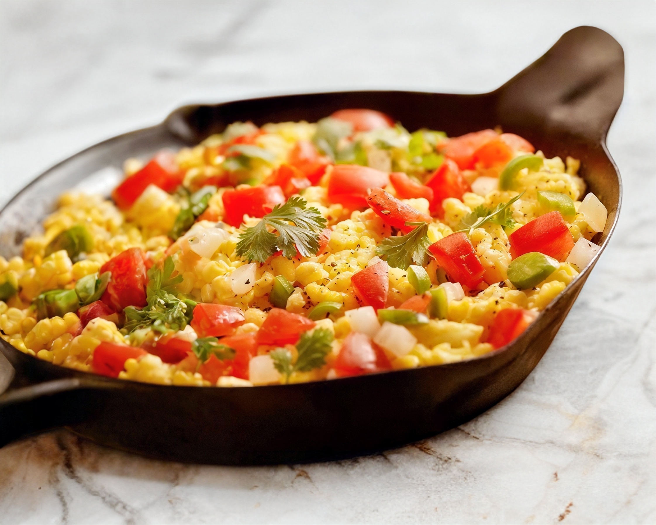 3 Huevos revueltos o estrellados a la mexicana, acompañados de 3 tortillas o un bolillo más salsa de la casa.