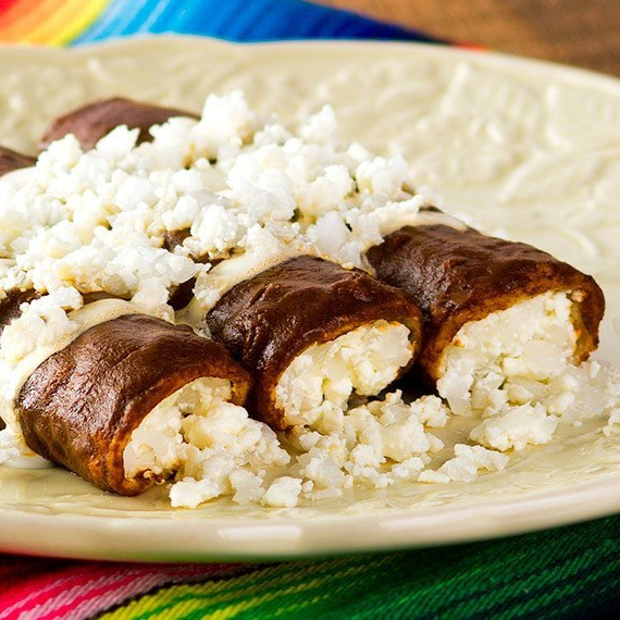 Orden de 3 enchiladas de mole acompañadas de crema, queso rayado, pollo y boli
