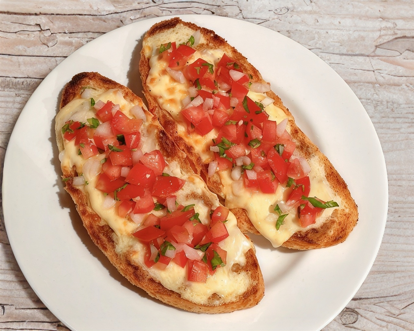 Orden de 2 molletes, queso manchego, jamón y frijoles refritos..