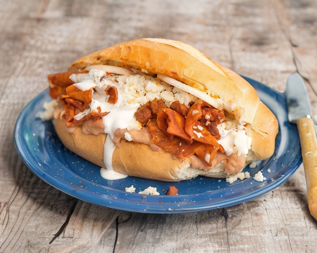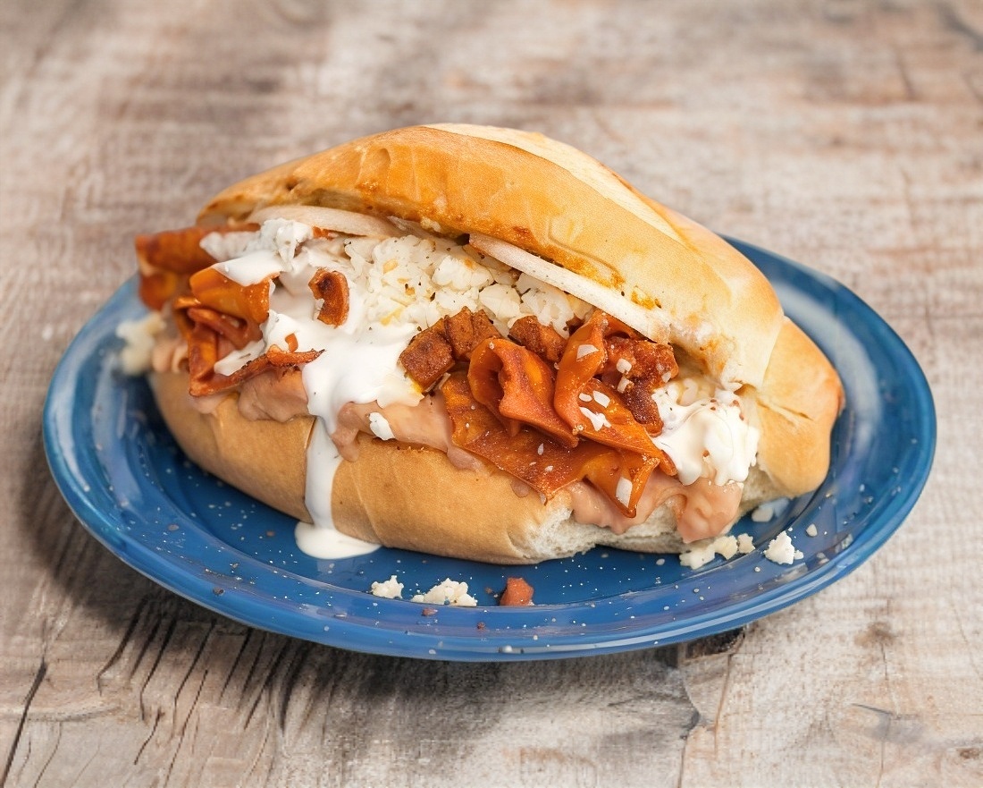huevo, jamón, queso oaxaca, frijoles refritos 1 bolillo.