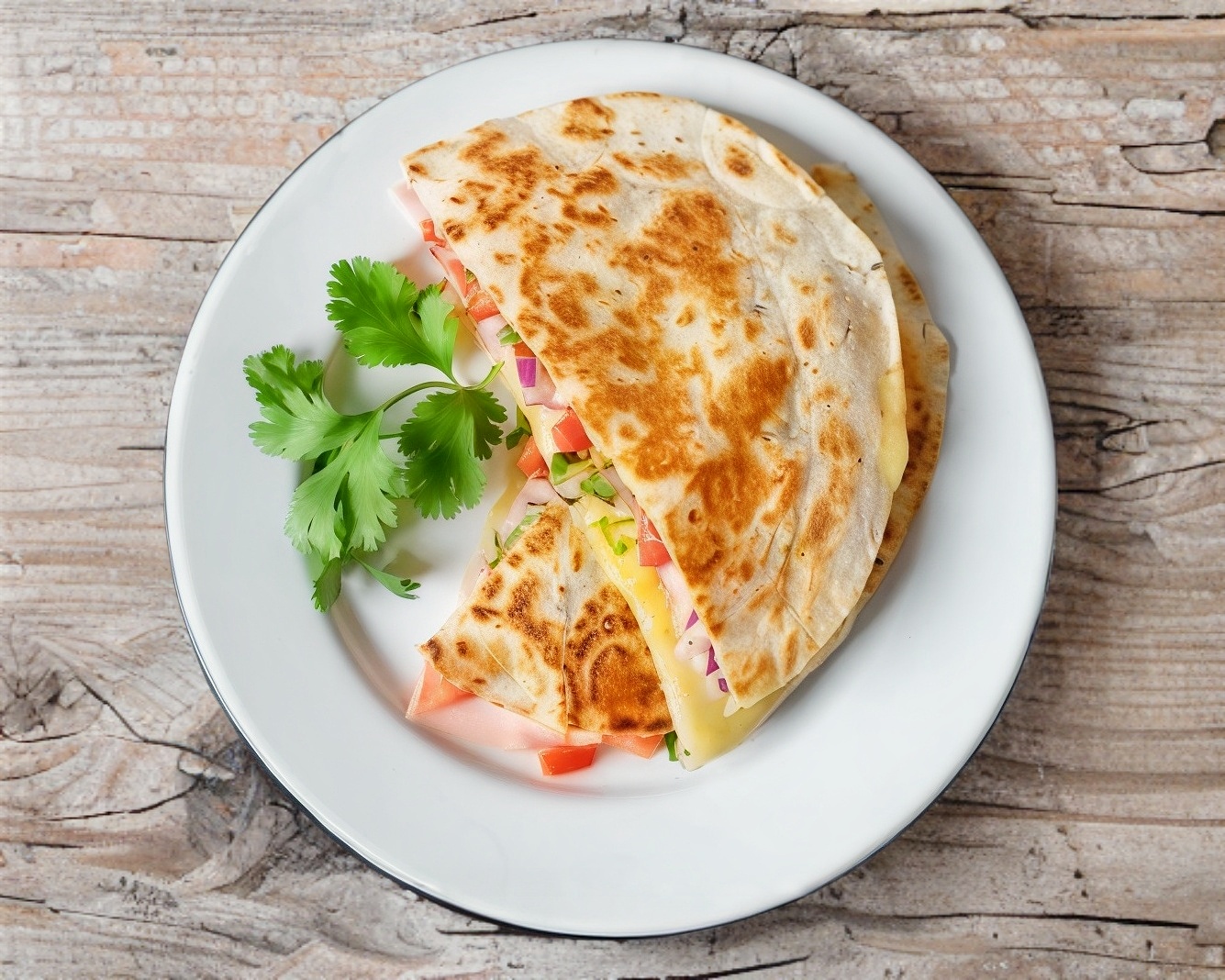 2 piezas, jamón, queso oaxaca y pico de gallo