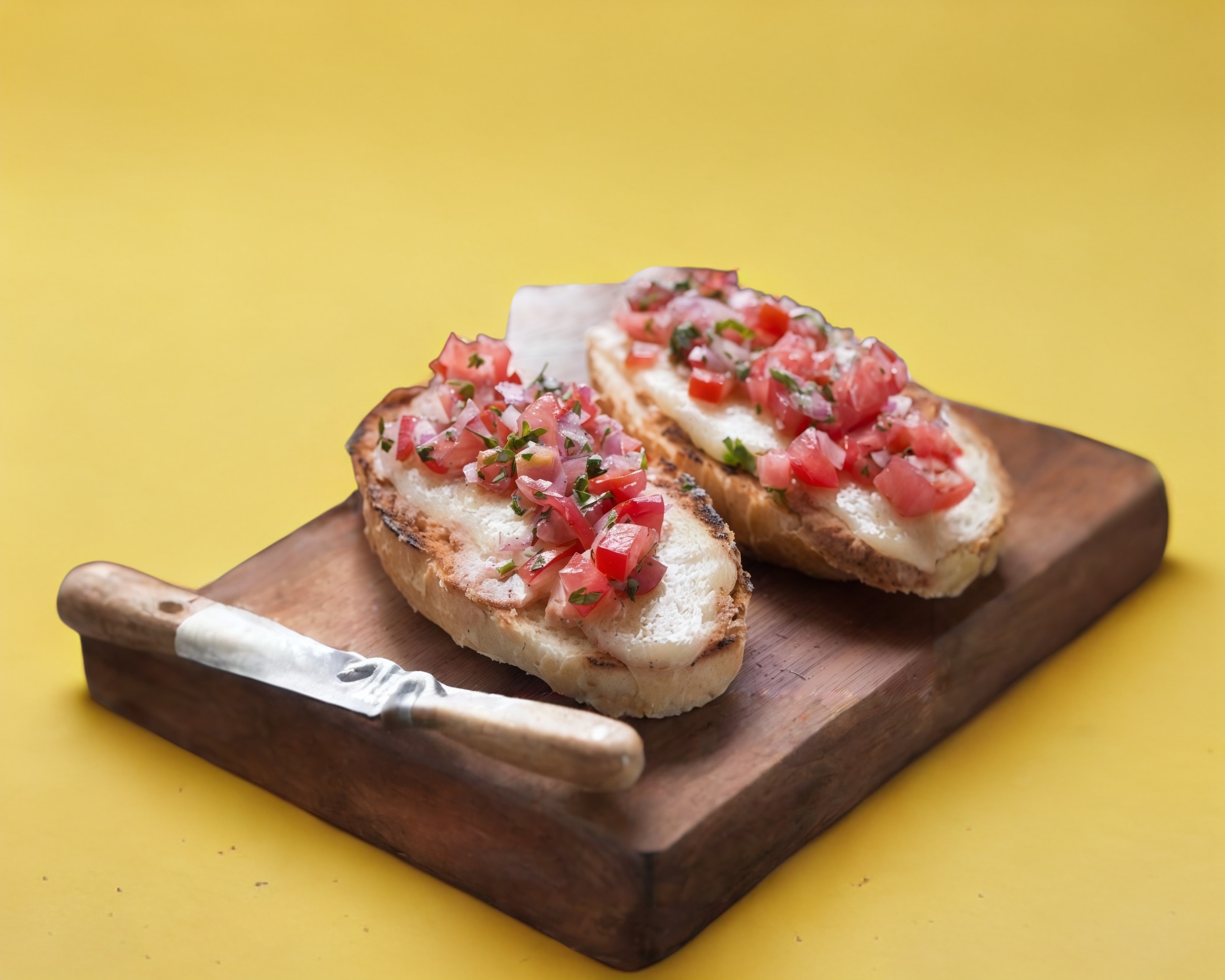 Pan con frijol y queso manchego servidos con salsa mexicana