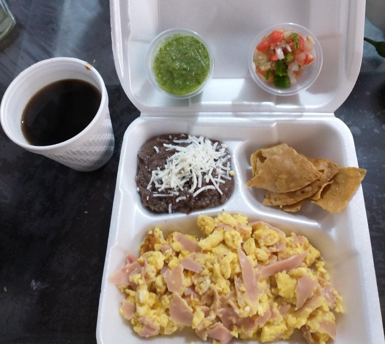 Huevos con Jamón*1 + Café extra*1 + Bolillo extra*1