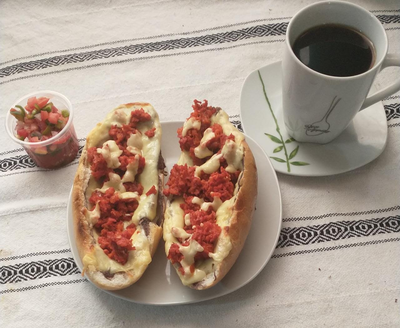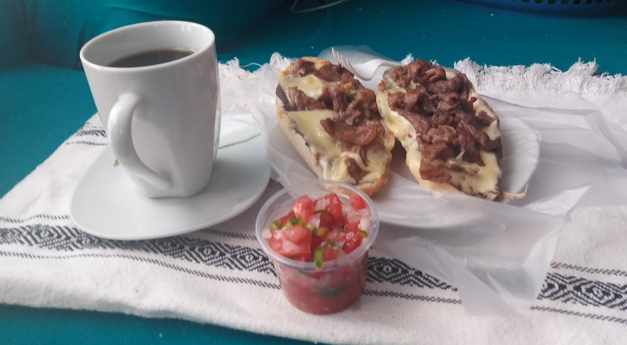 Molletes pan con frijoles jamon queso manchego mantequilla bistec y pico de gallo incluye cafe