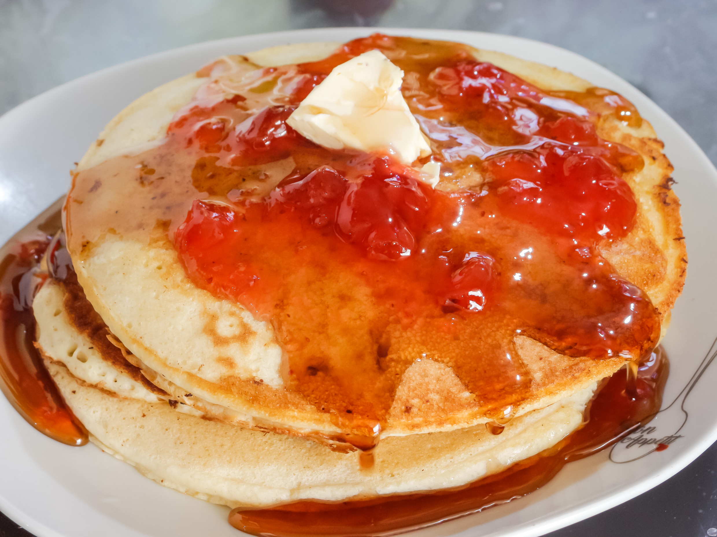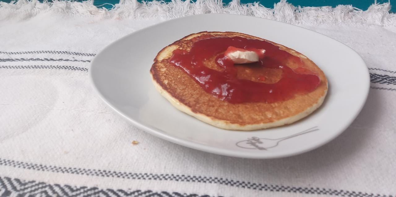 Con mermelada de fresa o miel de maple a escoger.