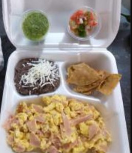 Chilaquiles verdes o rojos con Pollo y Bistec, adicional llevan café y pan Gratis
