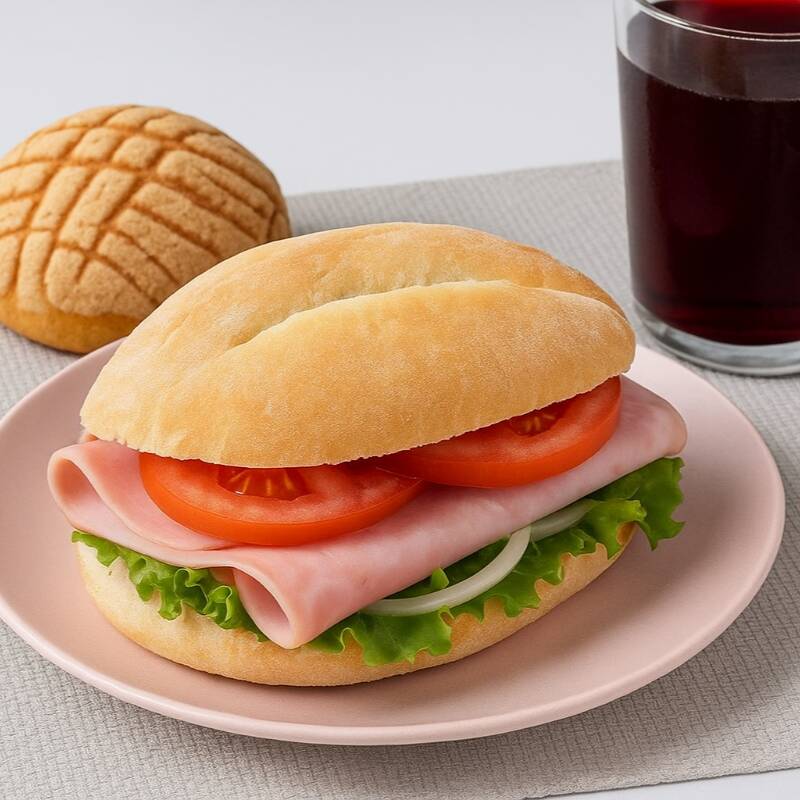 Jamon de pavo, lechuga, jitomate, cebolla, aguacate, mayonesa o aderezo, picante.
