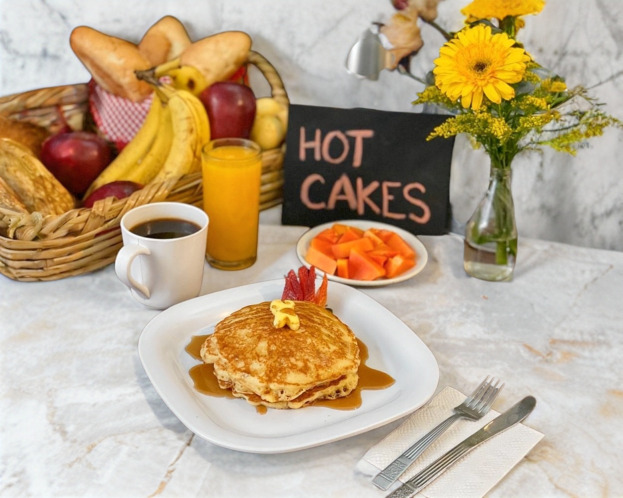 Panqueques (Incluyen jugo, fruta, café o té)