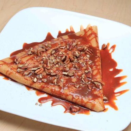 Crepa de cajeta con nuez picada.