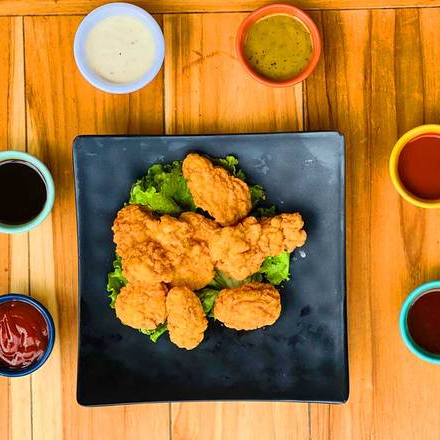 Nuggets de pollo con 8 piezas bañados con tu aderezo favorito.