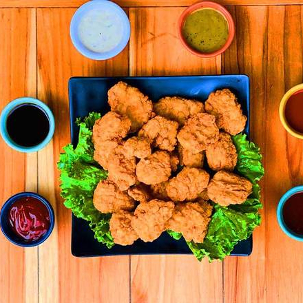 5 Piezas de nuggets bañados con tu aderezo favorito.