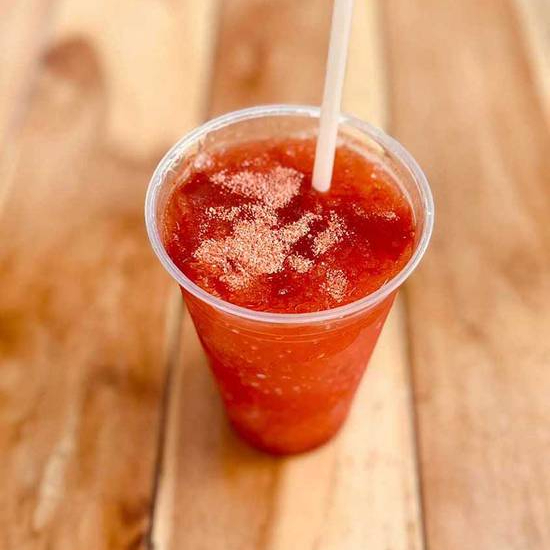 Frappé con hielo molido, saborizante de mango y chamoy.