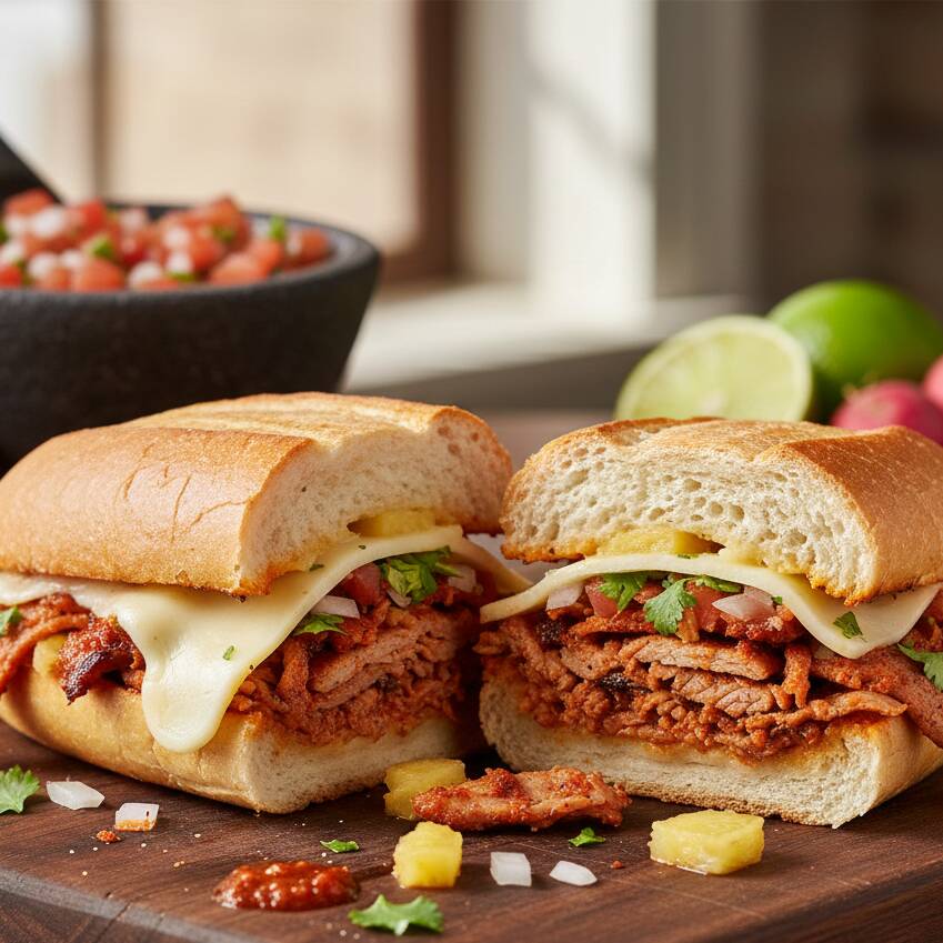Torta de jamón con queso, frijol y tú proteína favorita