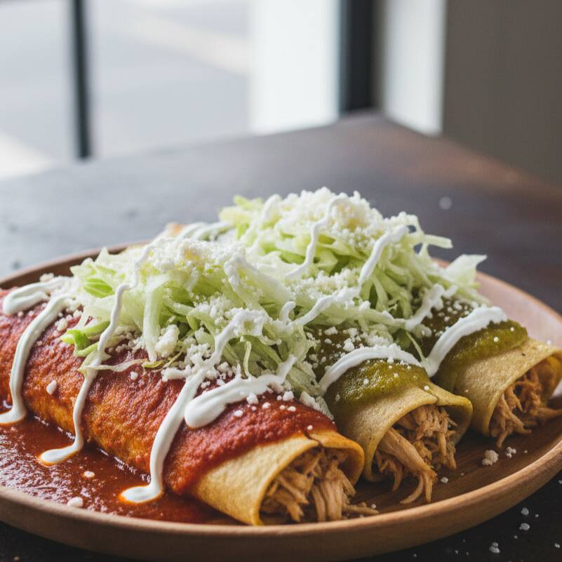 Orden de tres enchiladas bañadas en tu salsa favorita