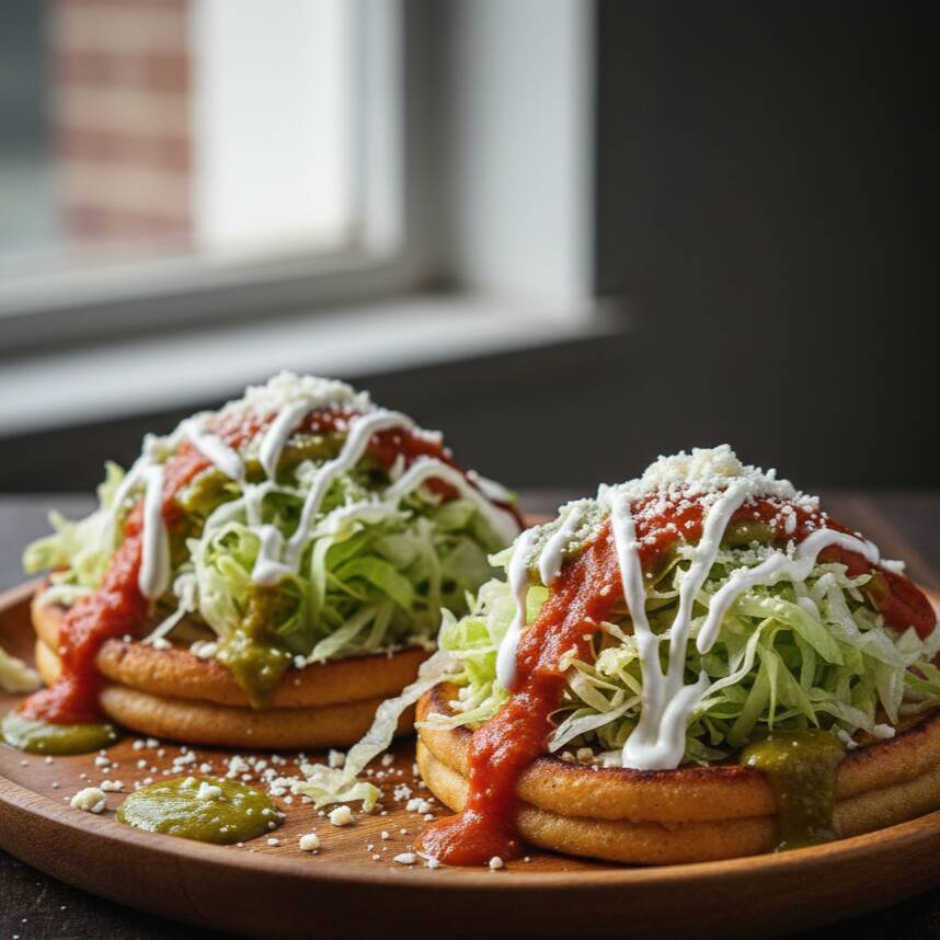 Sopes con frijol, crema y queso