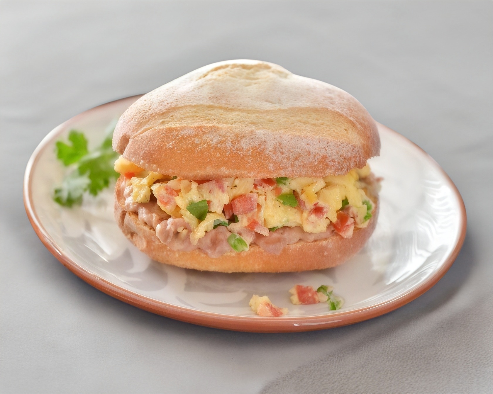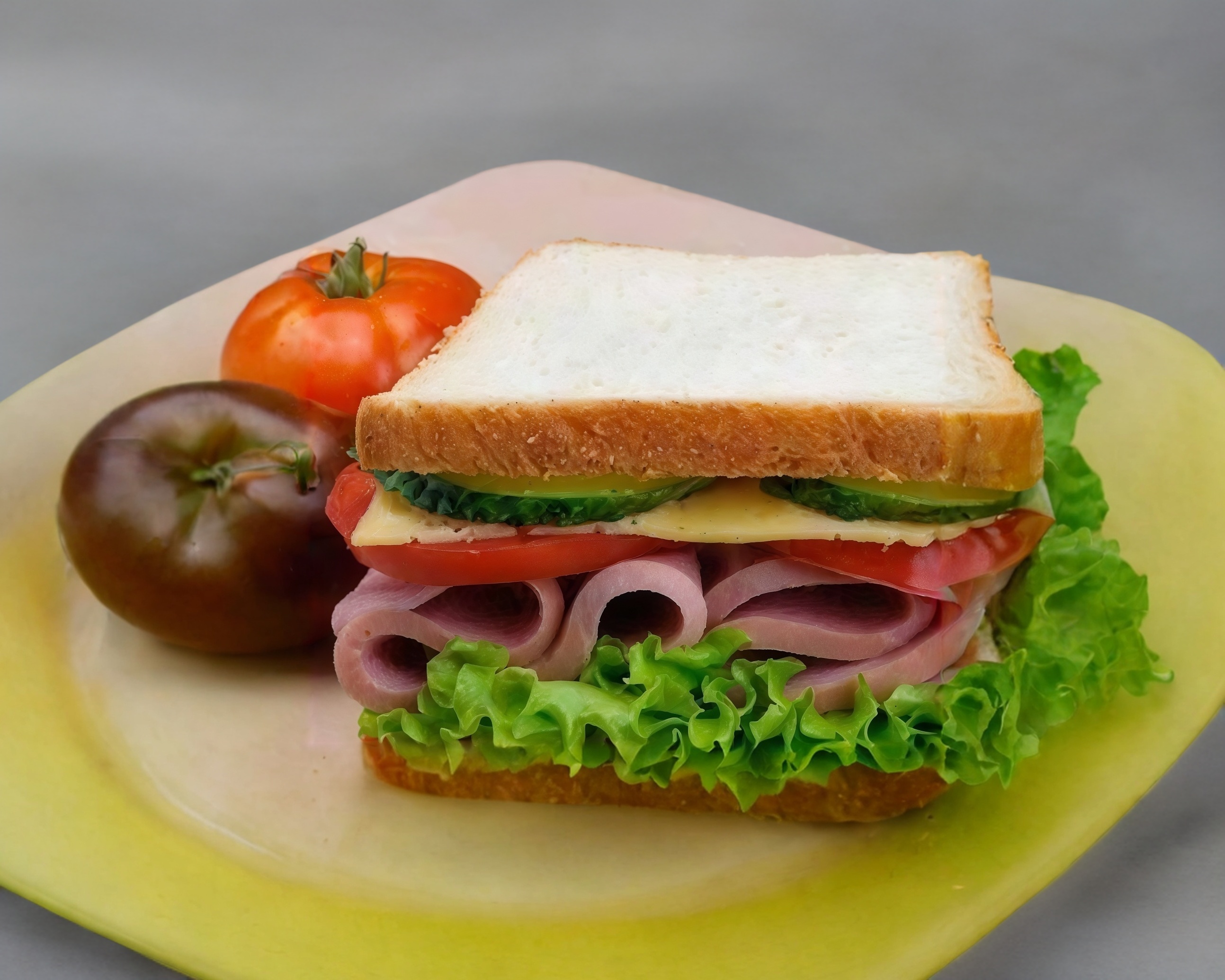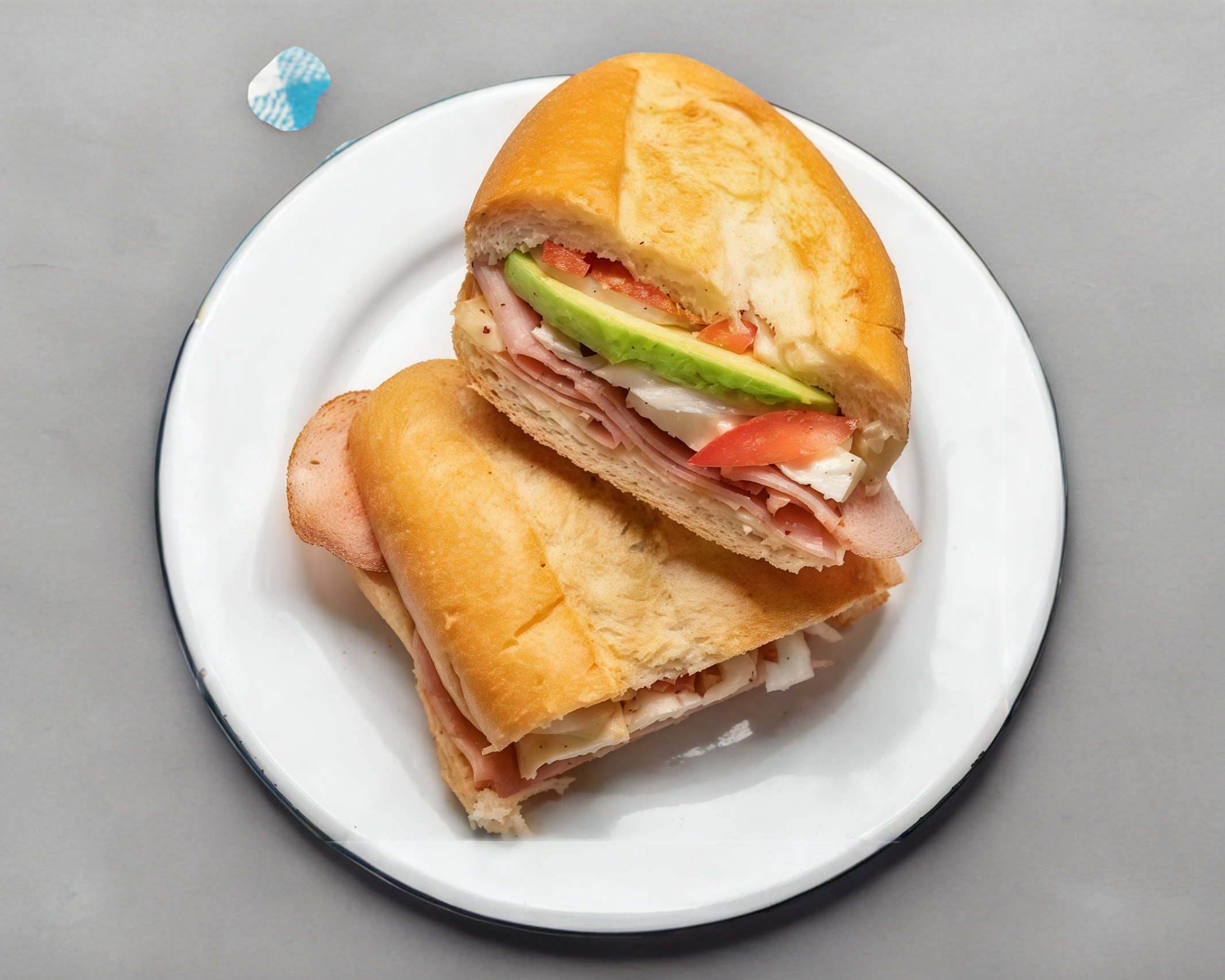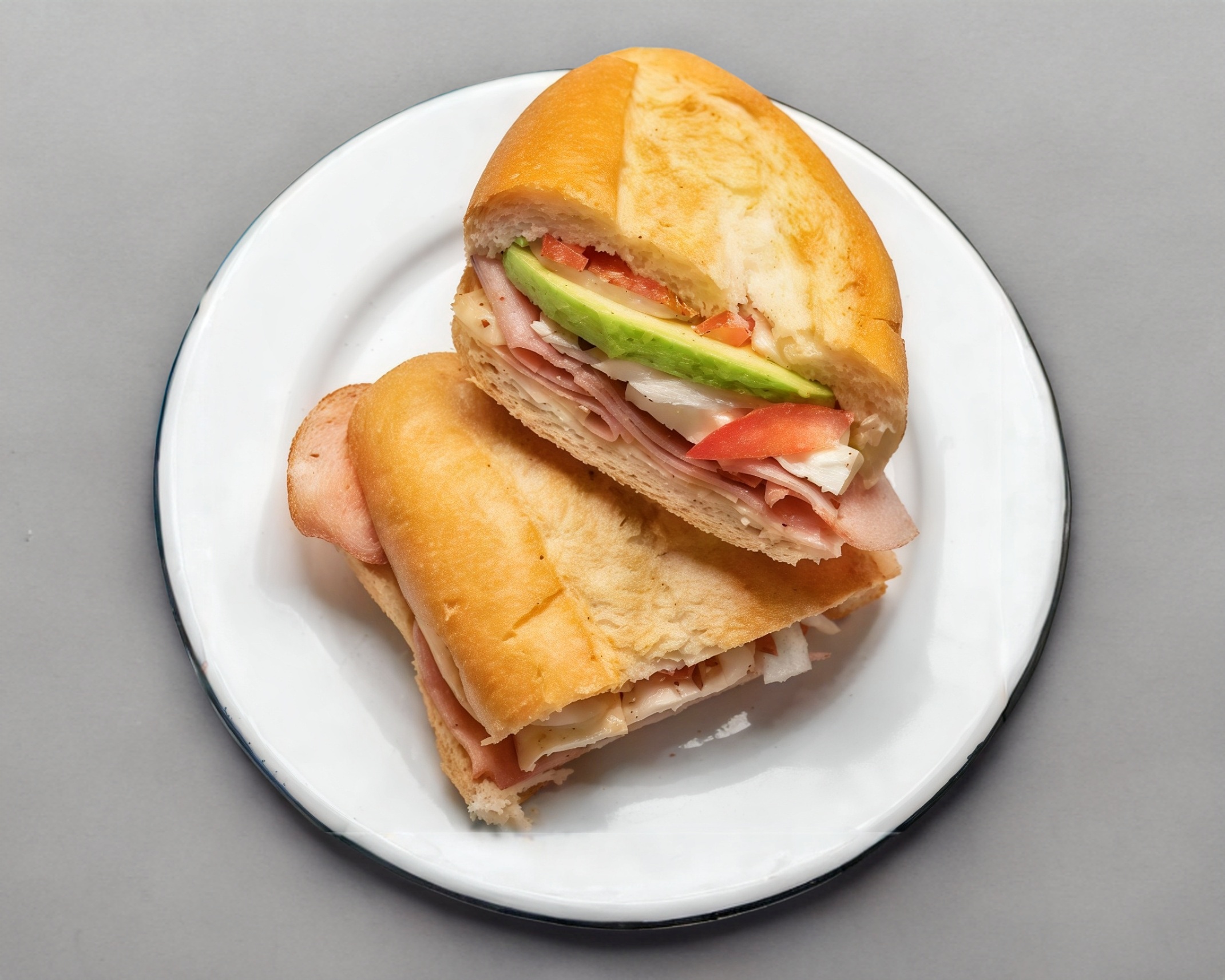 Jamón de pavo, jitomate, mayonesa, cebolla, chiles curados.
