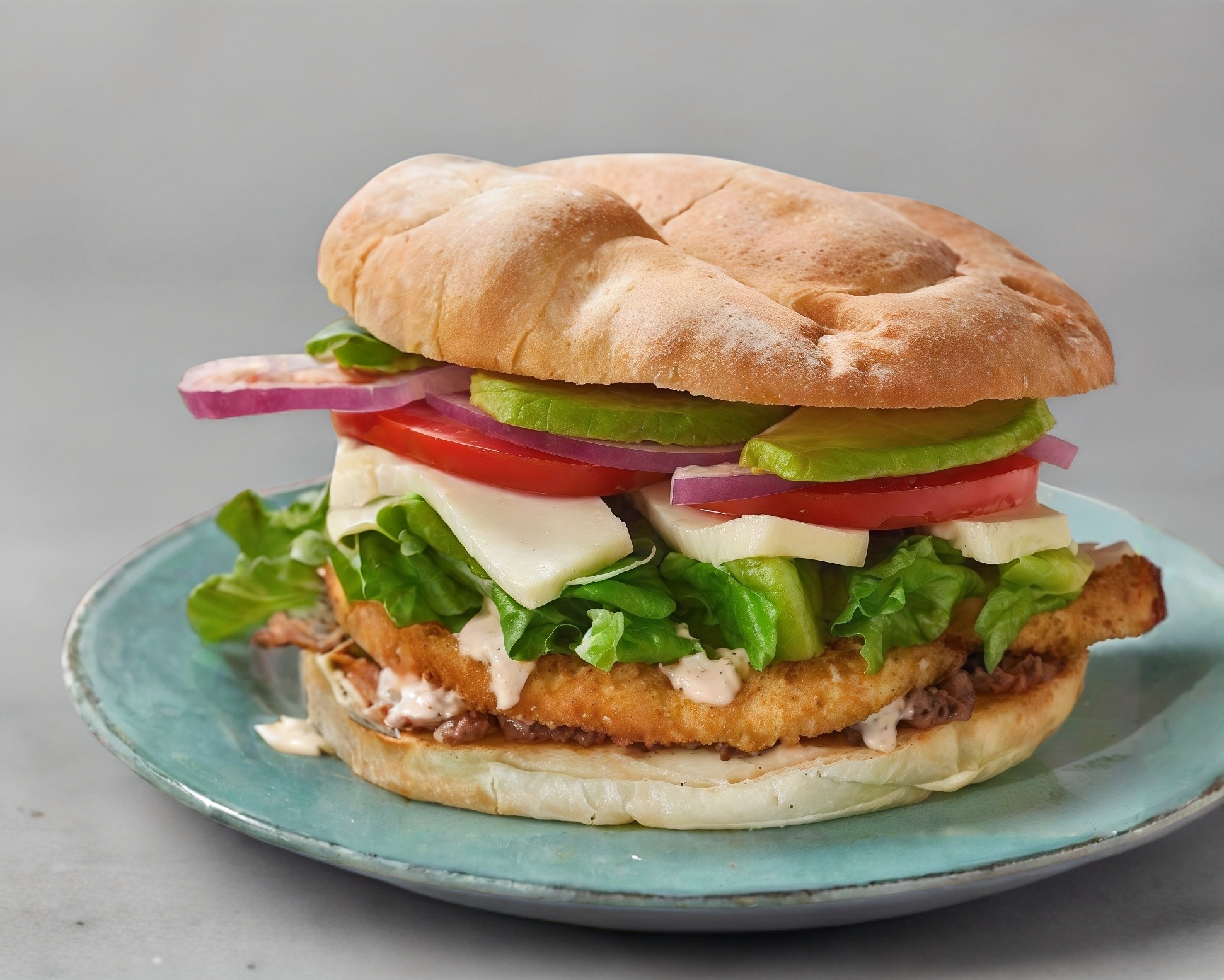 Pechuga empanizada ,cebolla, jitomate, rajas, lechuga.