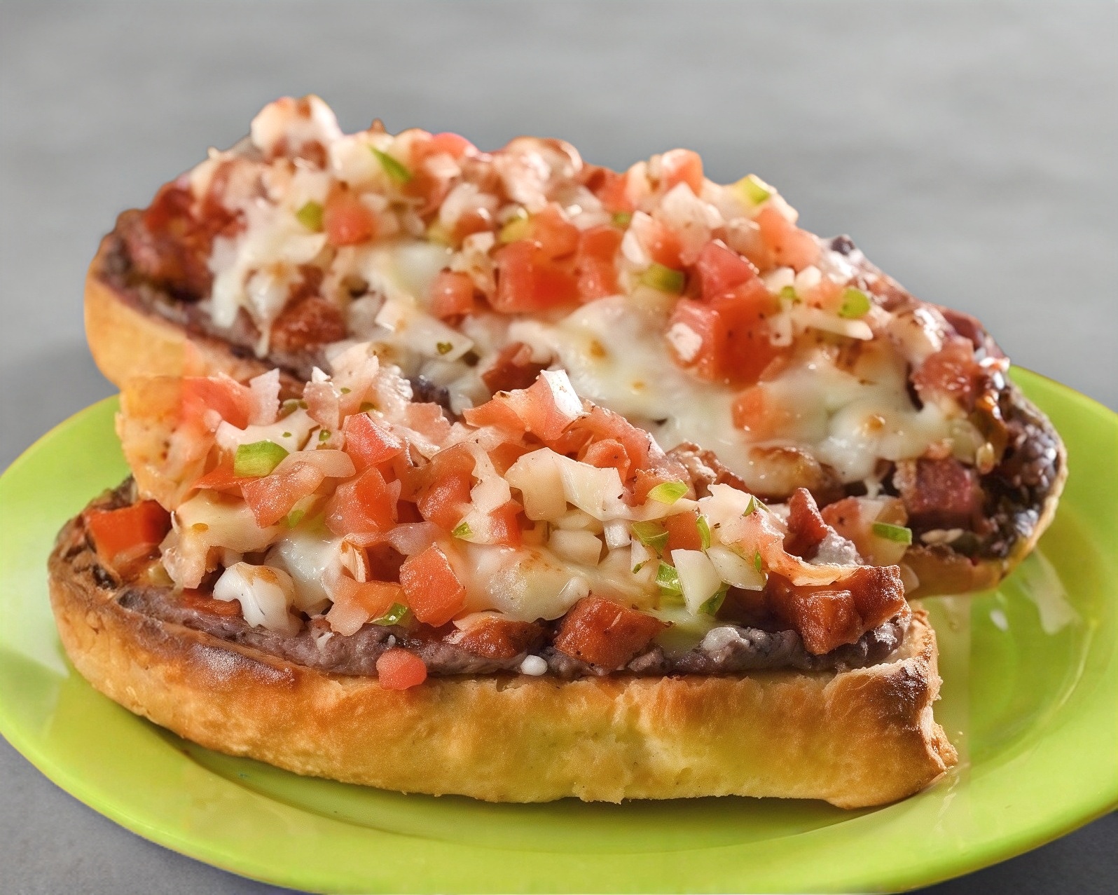 1 bolillo divido en 2 Pzs con frijoles, jamón, queso manchego, longaniza y pico de gallo.