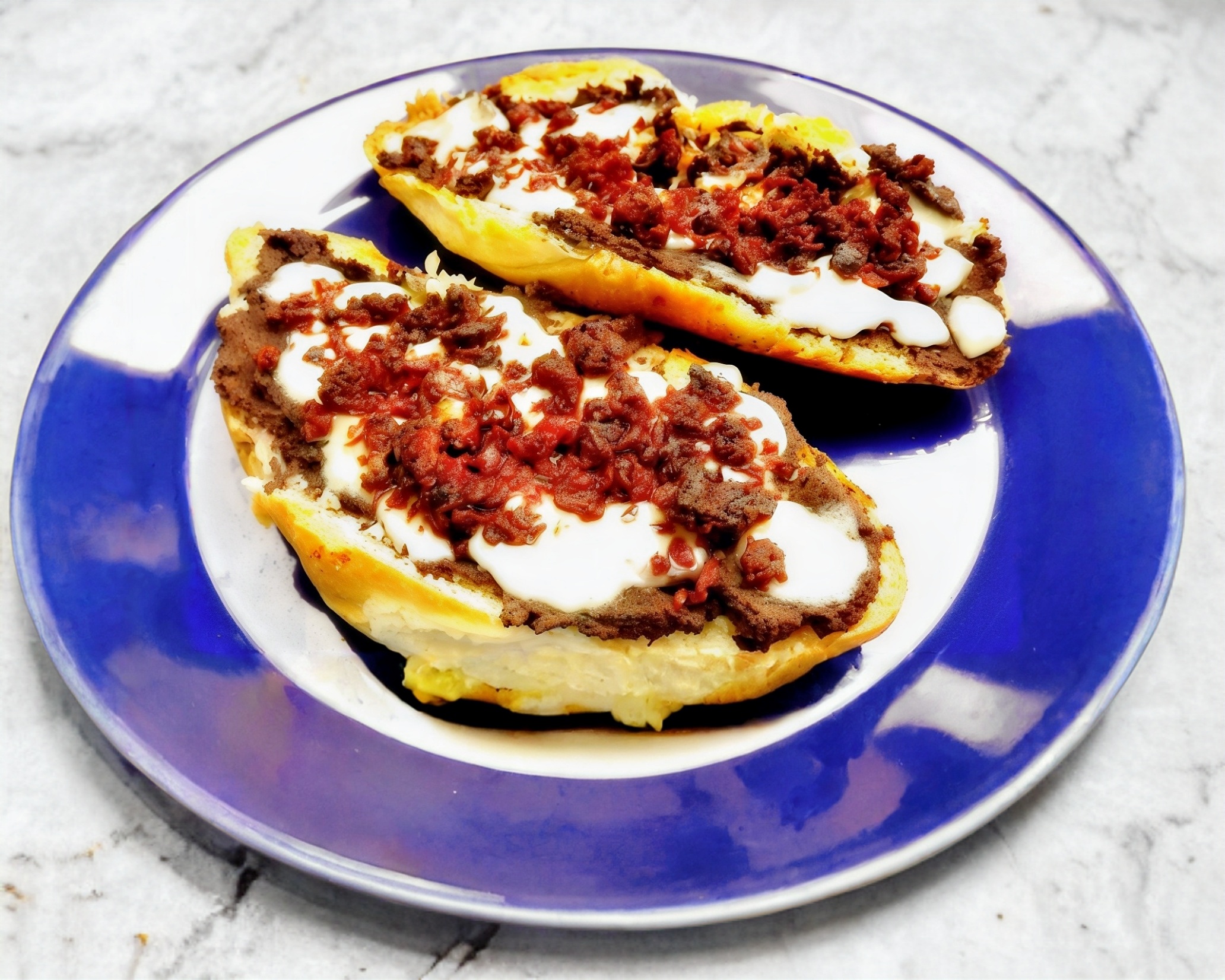 Deliciosos molletes con frijoles refritos y queso gratinado sobre pan dorado, acompañados de pico de gallo fresco (cebolla, jitomate y chile) servido aparte
