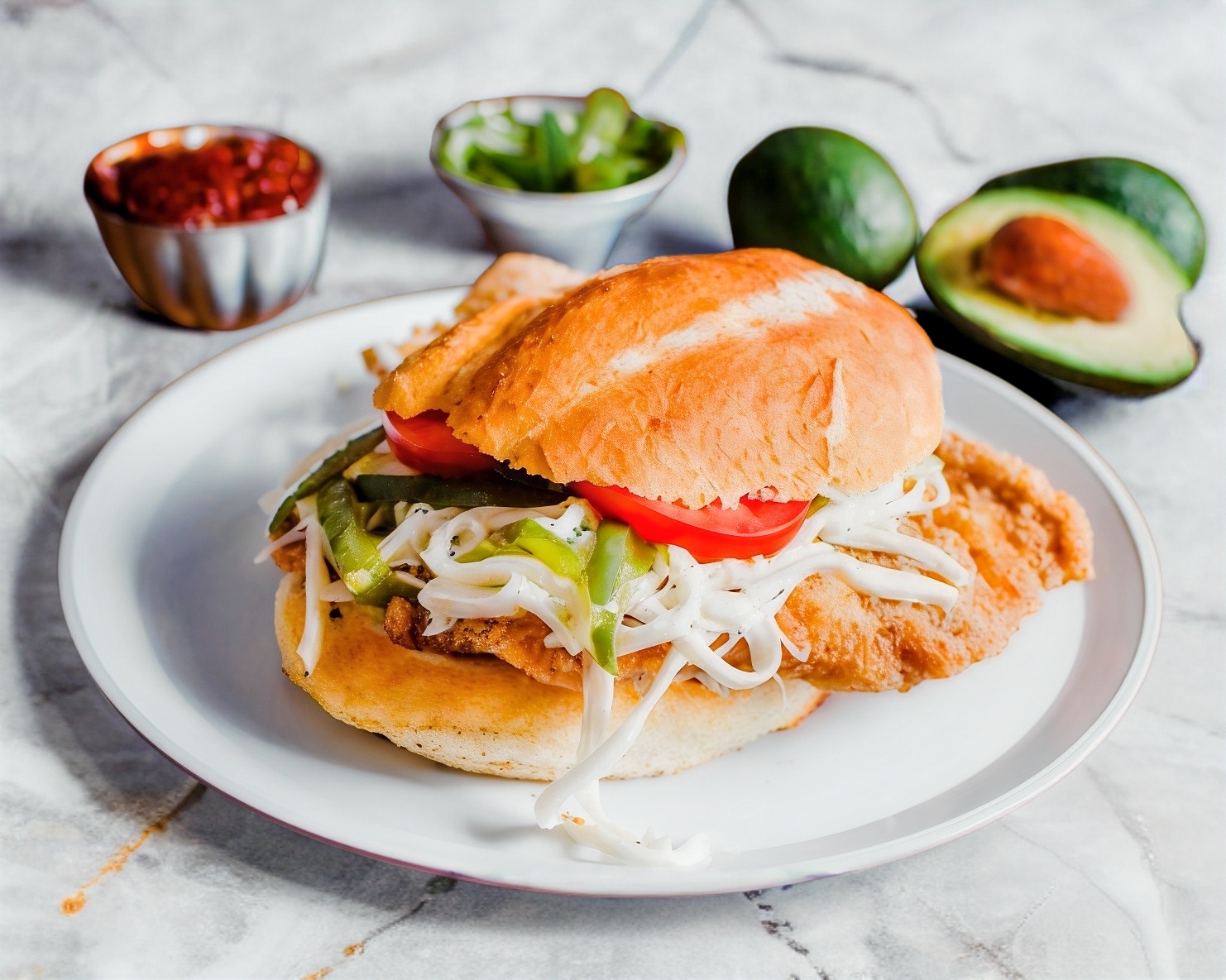 Pechuga de pollo , pan, frijol, mayonesa, jitomate, aguacate, cebolla,picante al gusto