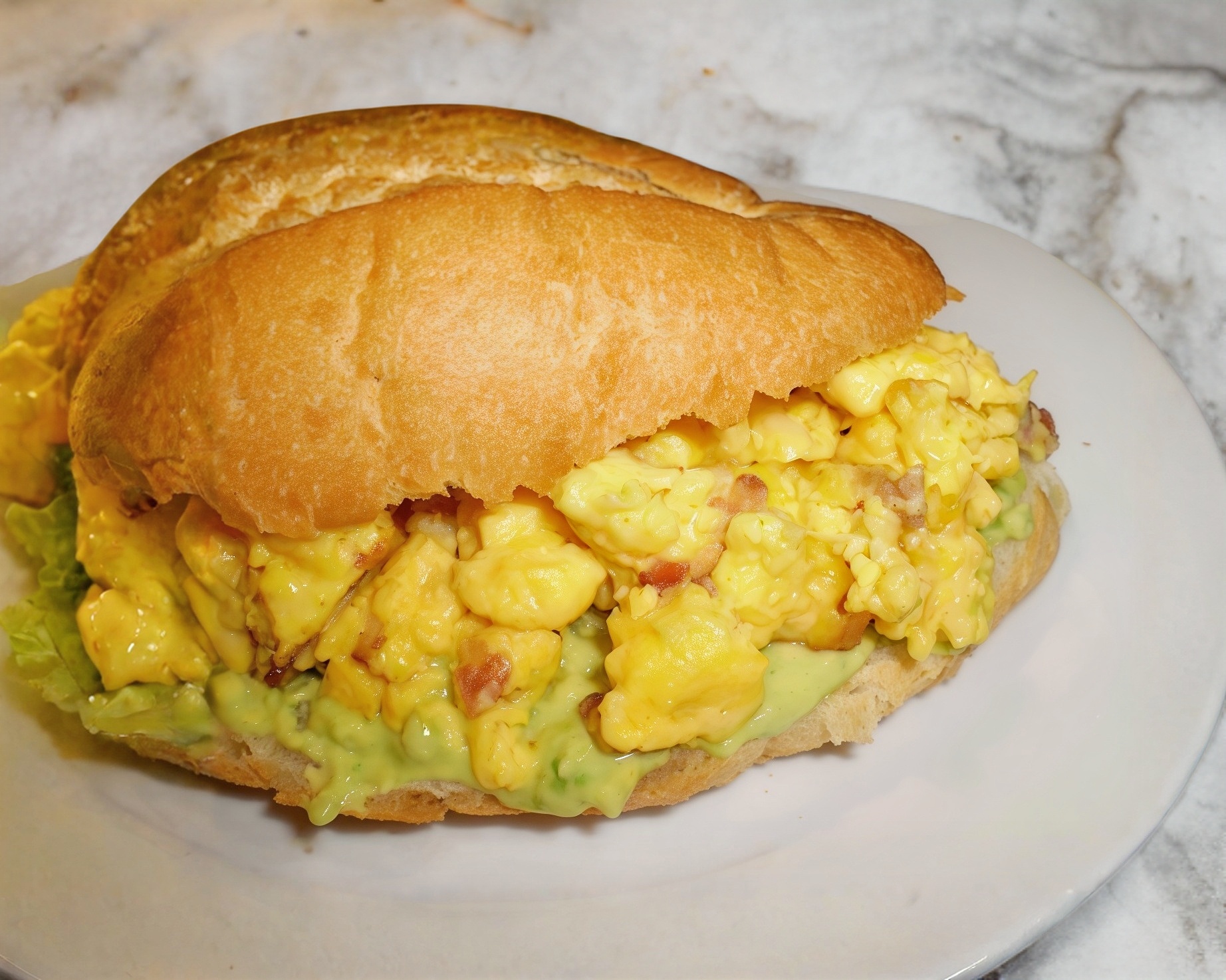 2 huevos, pan, cebolla, frijoles, jitomate, aguacate,y mayonesa picante al gusto