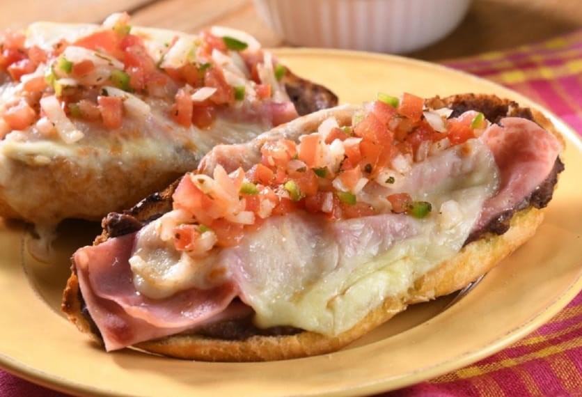 4 rebanadas de jamón, pan frijol, mayonesa, jitomate, aguacate, cebolla, picante al gusto