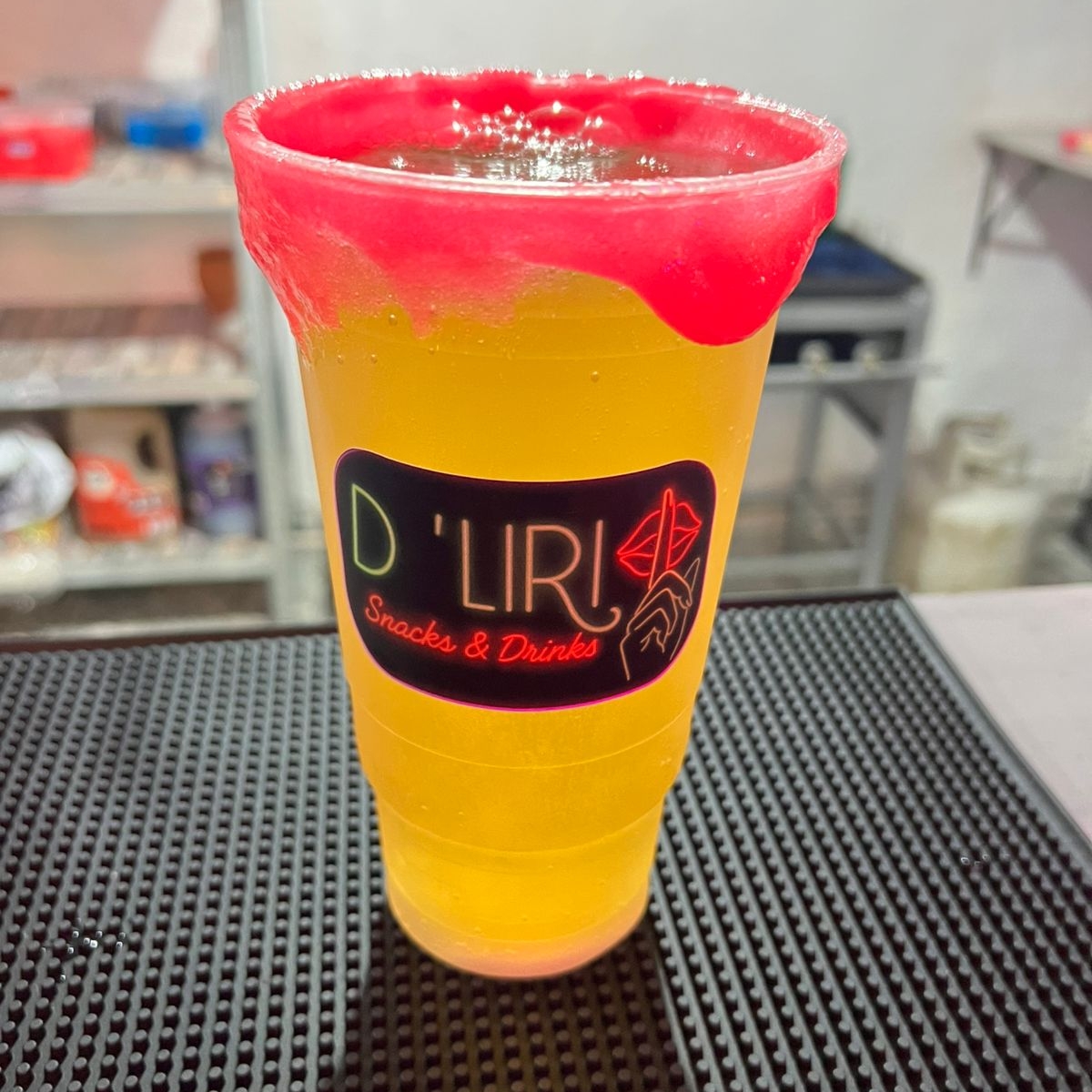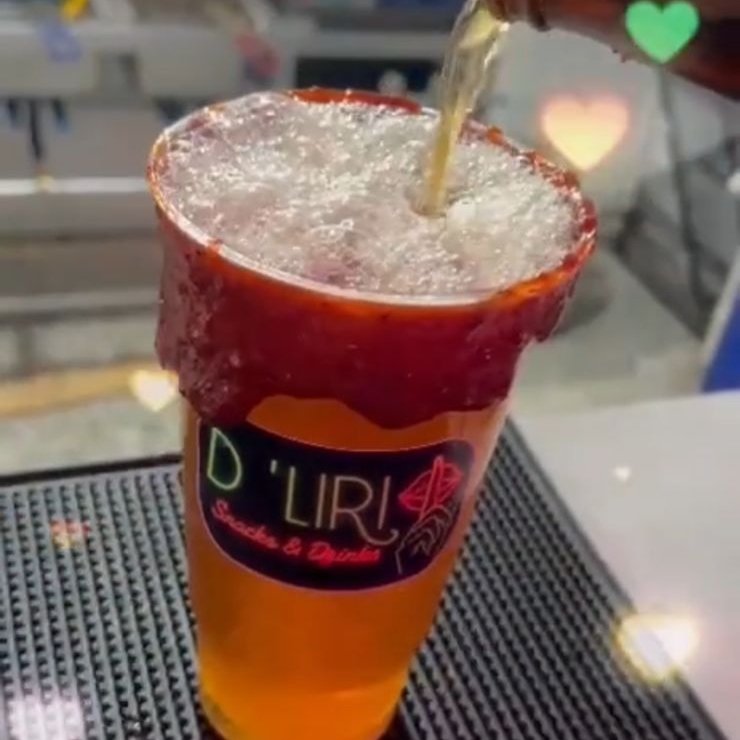 CERVEZA PREPARADA CON LIMON, SAL Y SALSAS NEGRAS, ESCARCHADA COM CHAMOY