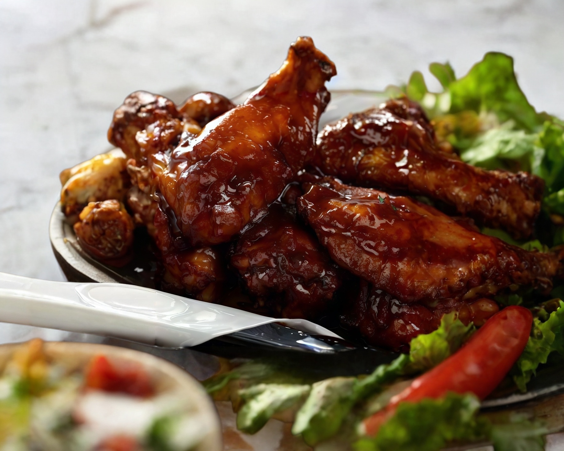 ALITAS BBQ 6 PZAS*1 + Papas a la Francesa 100 Grms*2 + Hamburguesa Res Económica Sirloin Sencilla 1/4 £*1