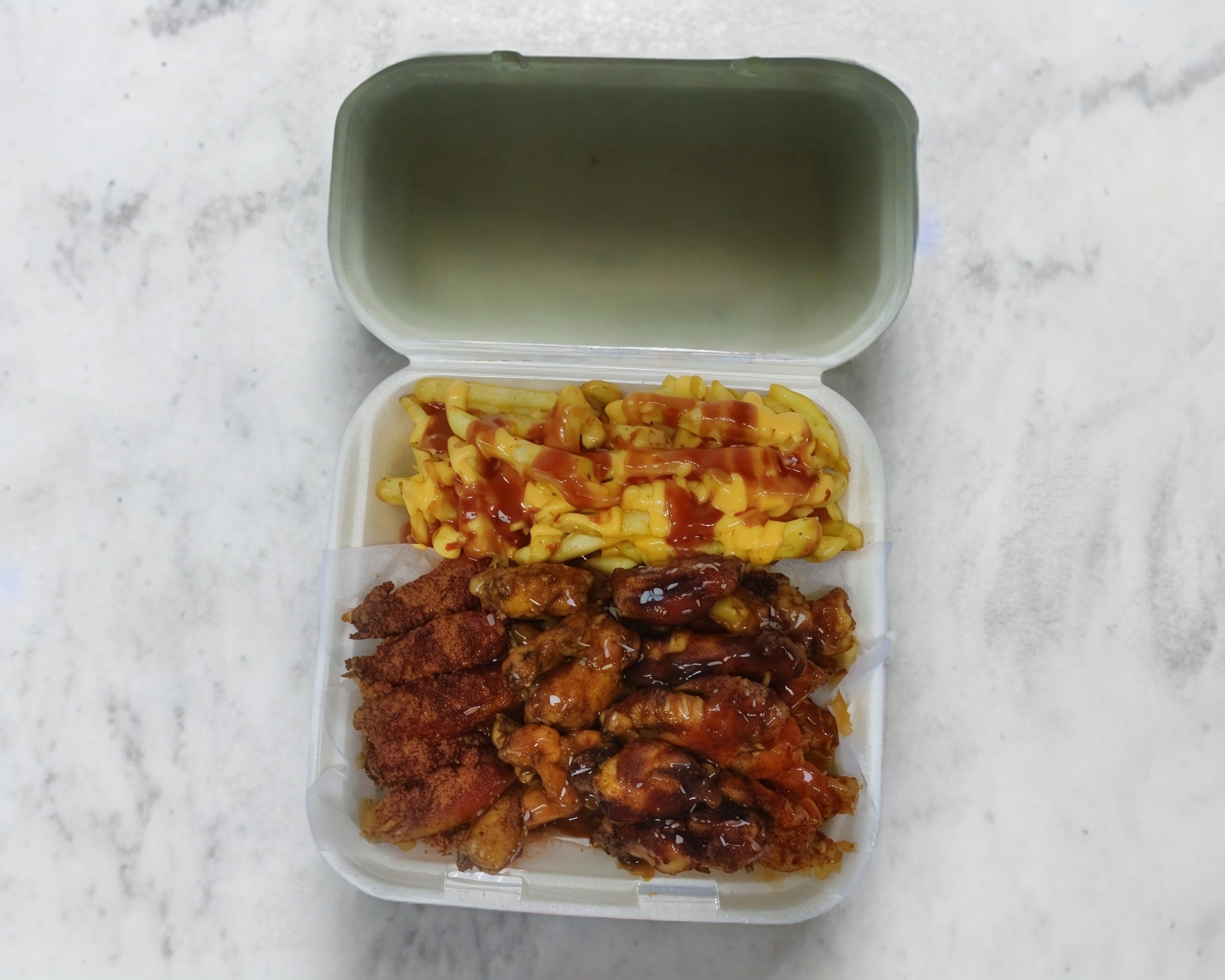ALITAS BBQ 6 PZAS*1 + Papas a la Francesa 100 Grms*1