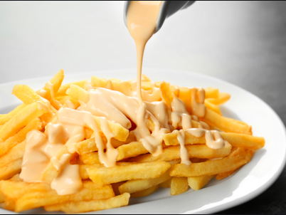 papas catsup, queso fundido, Salsa Botanera O Valentina