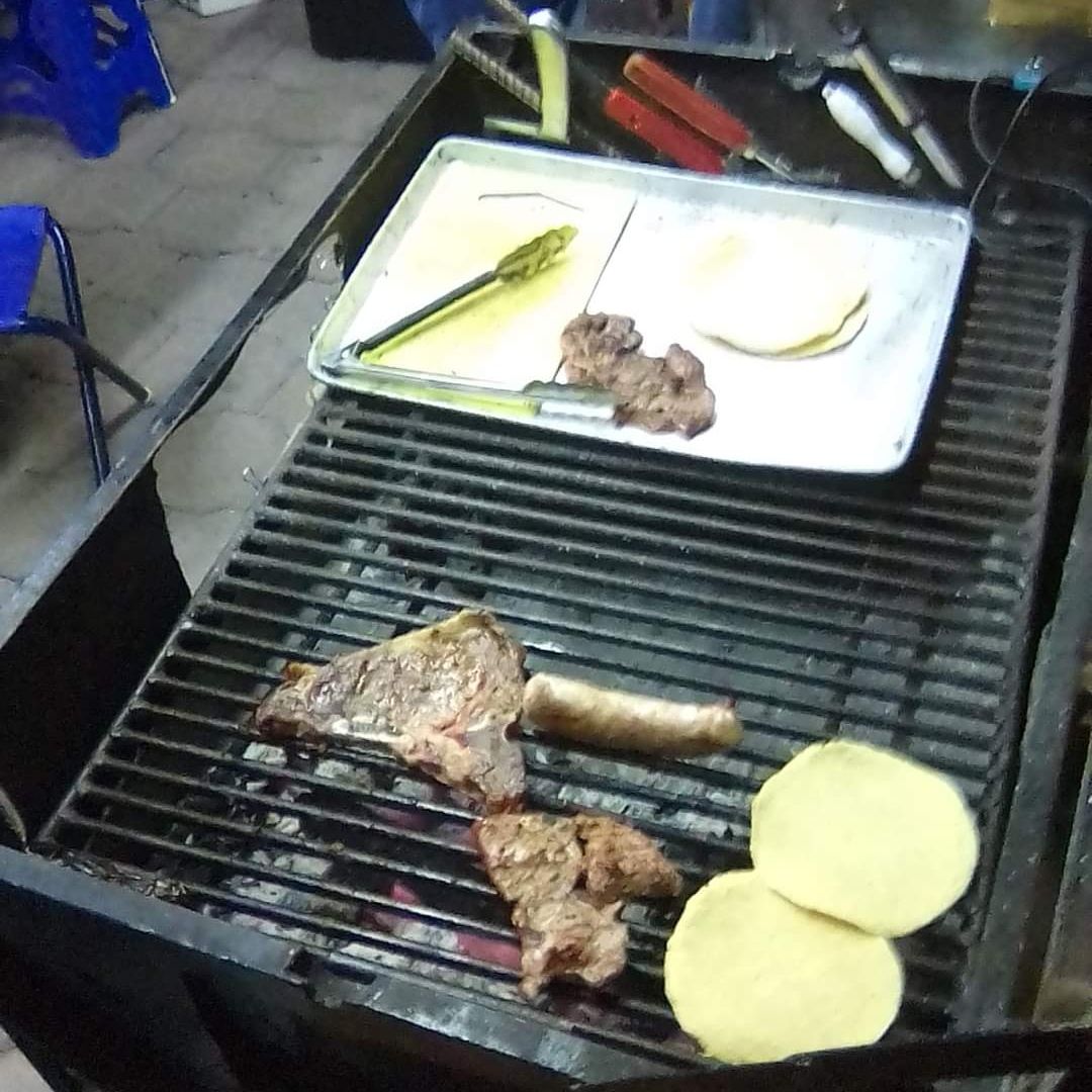 Carne Res tipo Sirloin. Lechuga. Jitomate. Catsup. Mostaza chiles encurtidos