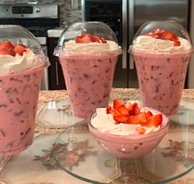 Fresas, crema, leche condensada, leche evaporada, uan pista de canela ( porción individual )