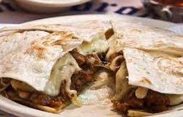 Arrachera marinada, cebolla, frijoles, Queso Mozarela, Tortilla de Harina.