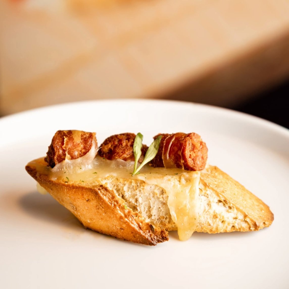 Queso manchego fundido y chistorra.