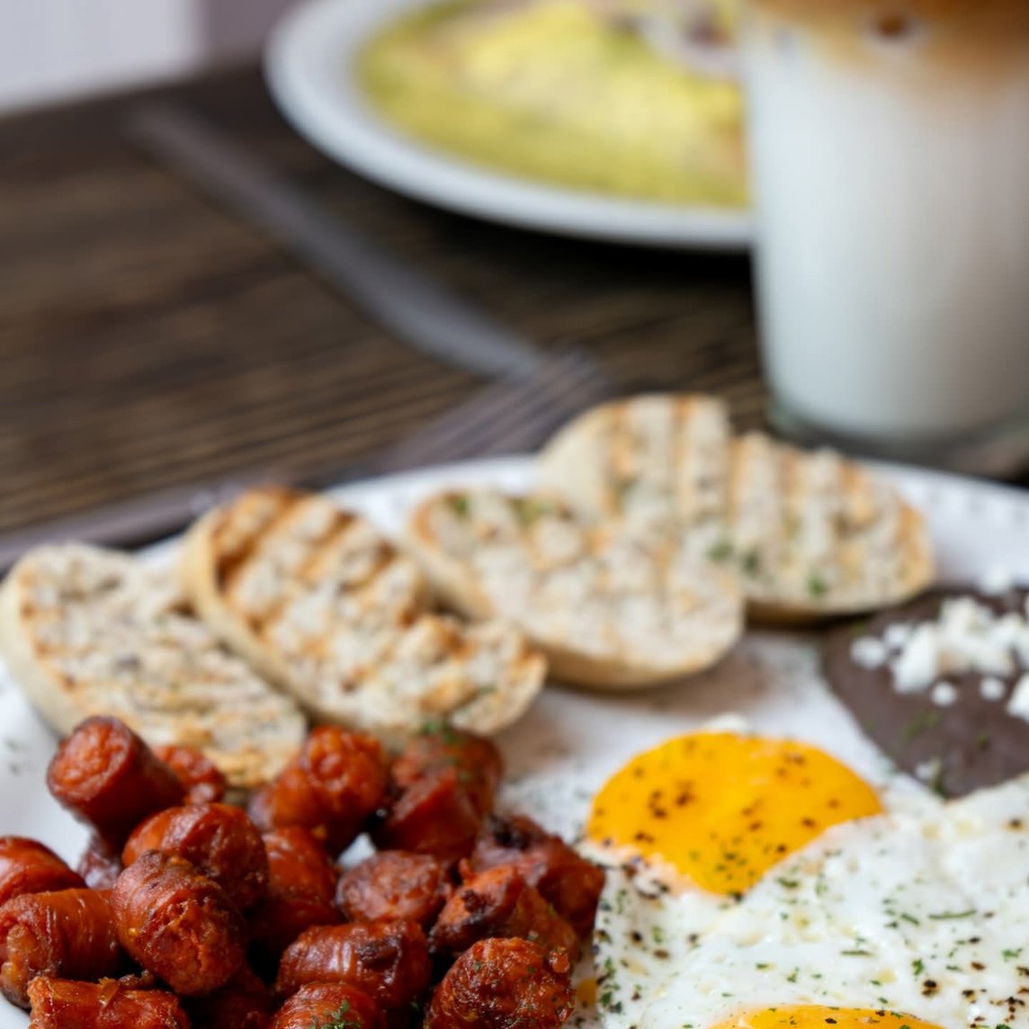 2 huevos estrellados o revueltos acompañados de frijoles refritos. Preparados al gusto elige: Mexicana, Pechuga de Pavo, Espinaca, Queso Manchego, Chistorra, Tocino Rancheros o Divorciados.