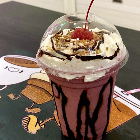 Deliciosa y refrescante malteada de chocolate acompañada de crema batida.