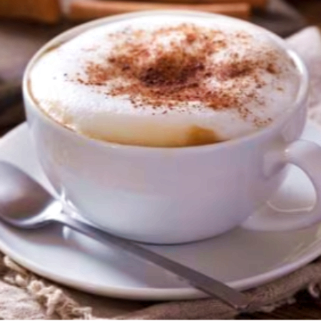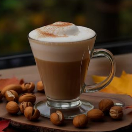 Bebida clásica de espresso y leche espumosa, acompañado con crema avellana.