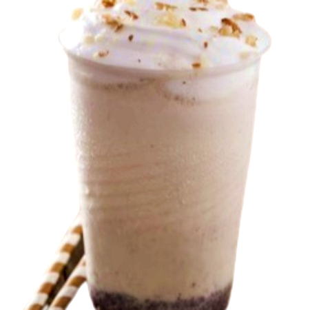 Refrescante malteada de delicioso chocolate blanco acompañado con crema batida y chispas de chocolate.