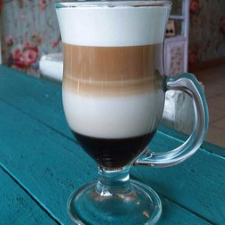 Bebida clásica de espresso y leche espumosa con crema irlandesa.